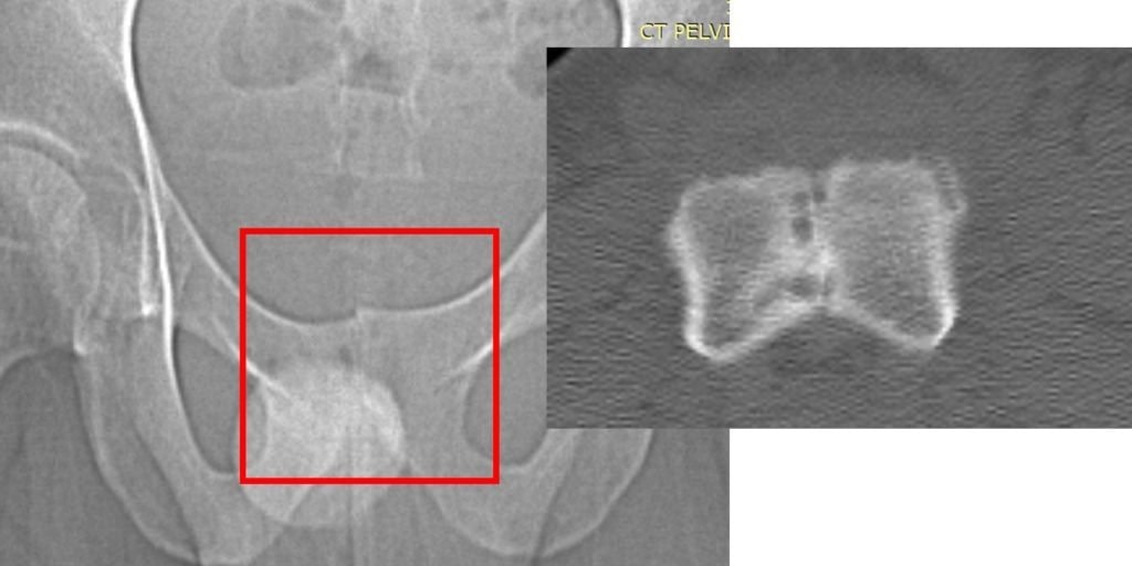 - X-rays: May reveal changes in bone structure, such as irregularities or reactive bone formation near the pubic symphysis.