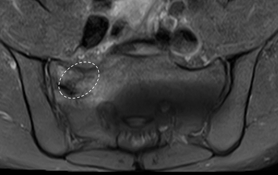 Osteitis pubis is a condition that may occur when the symphysis pubis joint is subjected to excessive stress or instability, either directly, or as a potential consequence of dysfunction in the SI joints. For example, dysfunction in the SI joints may contribute to broader pelvic girdle instability, which can in turn place increased stress on the pubic symphysis. This ongoing mechanical strain may result in inflammation and discomfort in the joint, potentially contributing to further pelvic instability.
