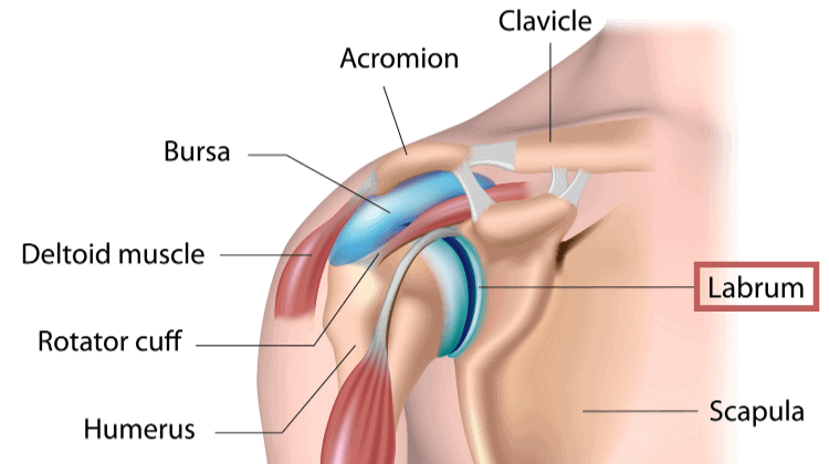 The labrum is a cup-shape rim of cartilage that lines and reinforces the ball-and-socket joint of the shoulder. It’s the lip of the socket of the ball and socket joint. It helps to connect the socket part of the scapula with the head of the humerus. It makes the socket deeper, creating space for the bones to move, and coats the surface of the socket area with soft cartilage, enabling the shoulder to move more freely and painlessly.